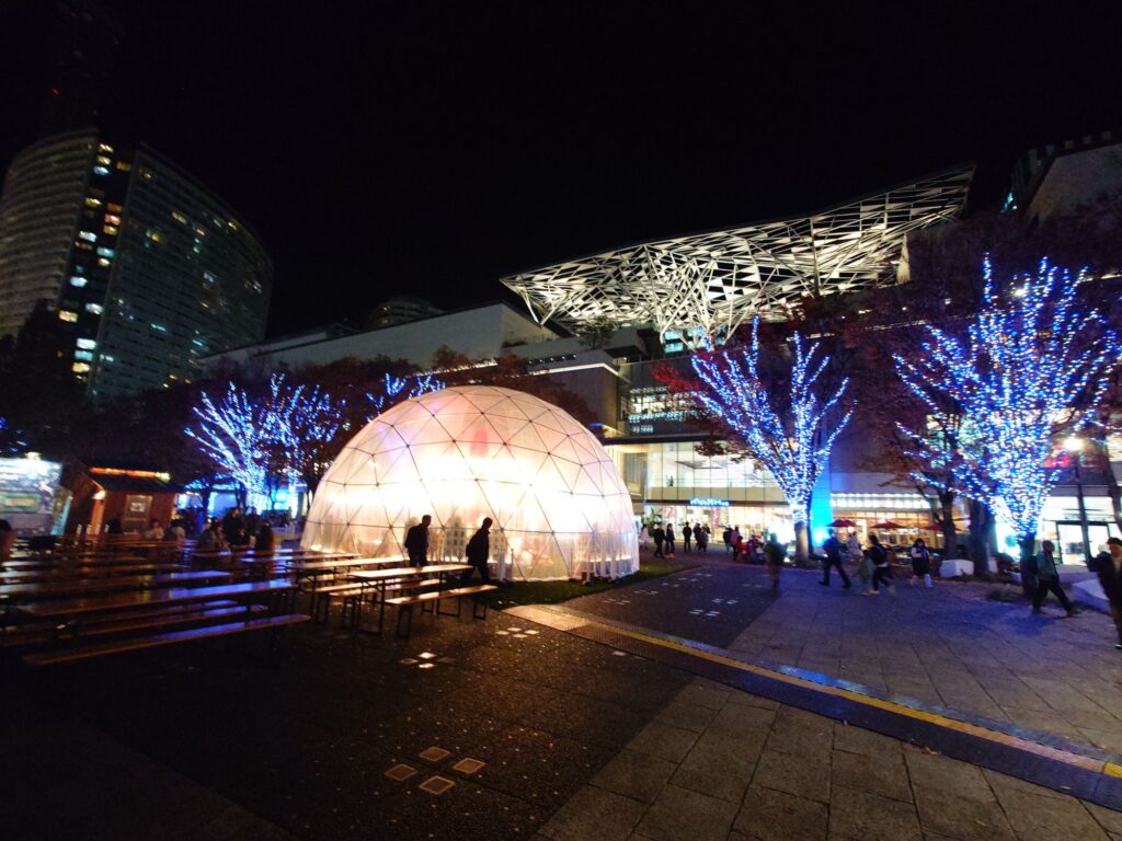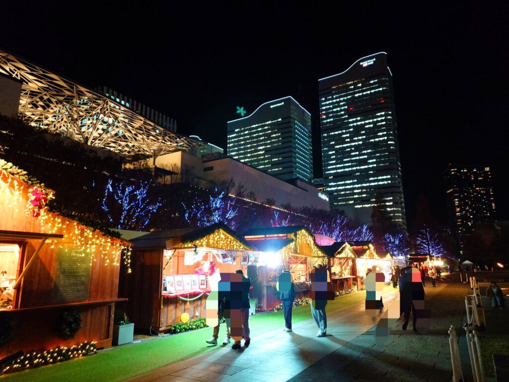 赤レンガのクリスマスマーケットはすっかり有名だけど、グランモールのマーケットは夜景とイルミの雰囲気がまた違って良し!