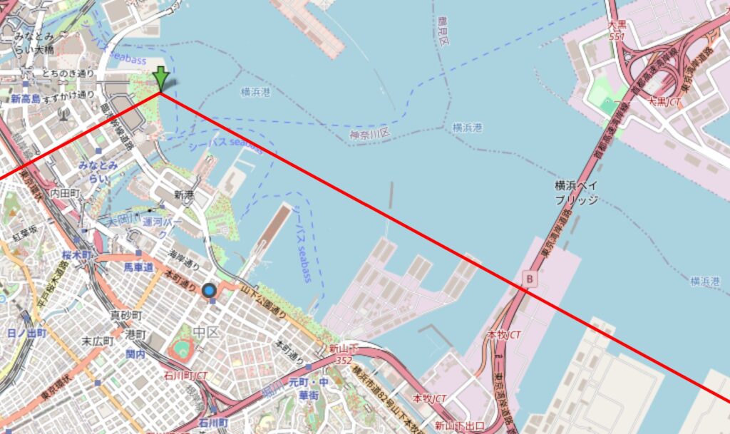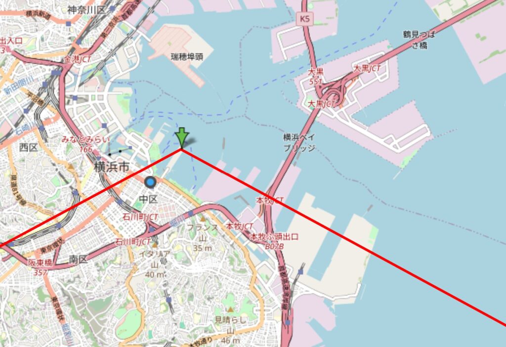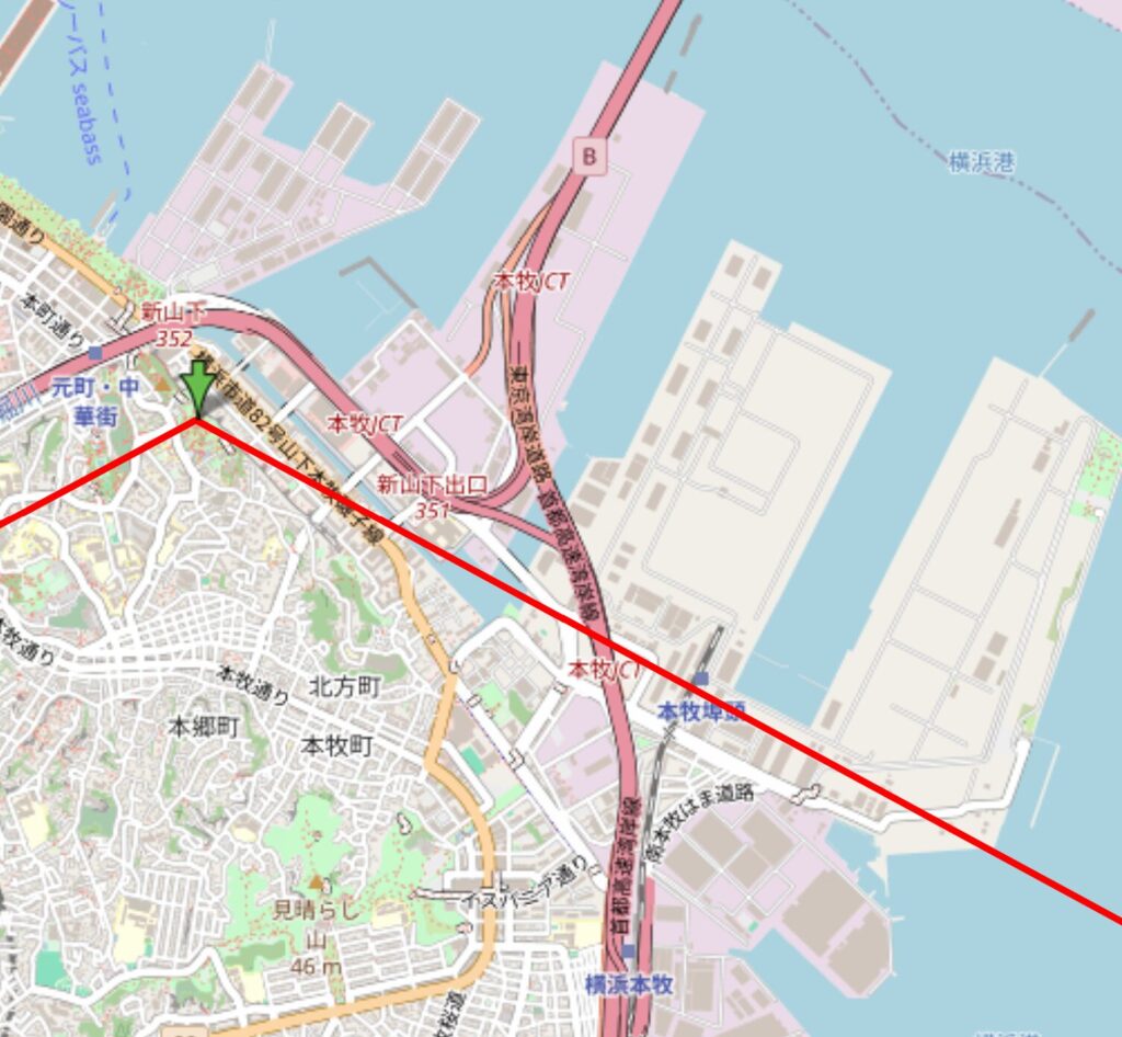 まず一つは、太陽の方角的に、山下ふ頭の建物群が視界の一部を遮る恐れがあります。
