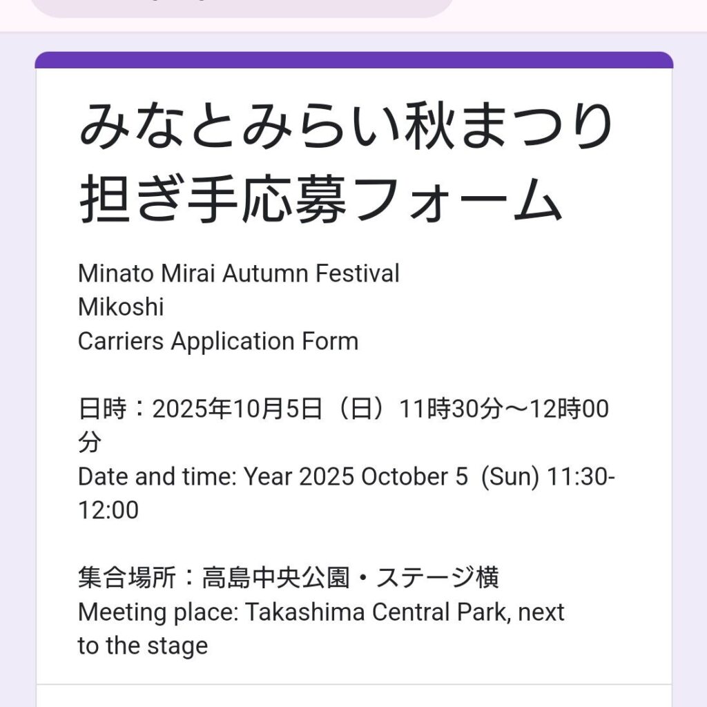 神輿参加には、Google Formからの回答が必要。マンション名などの入力が必要です