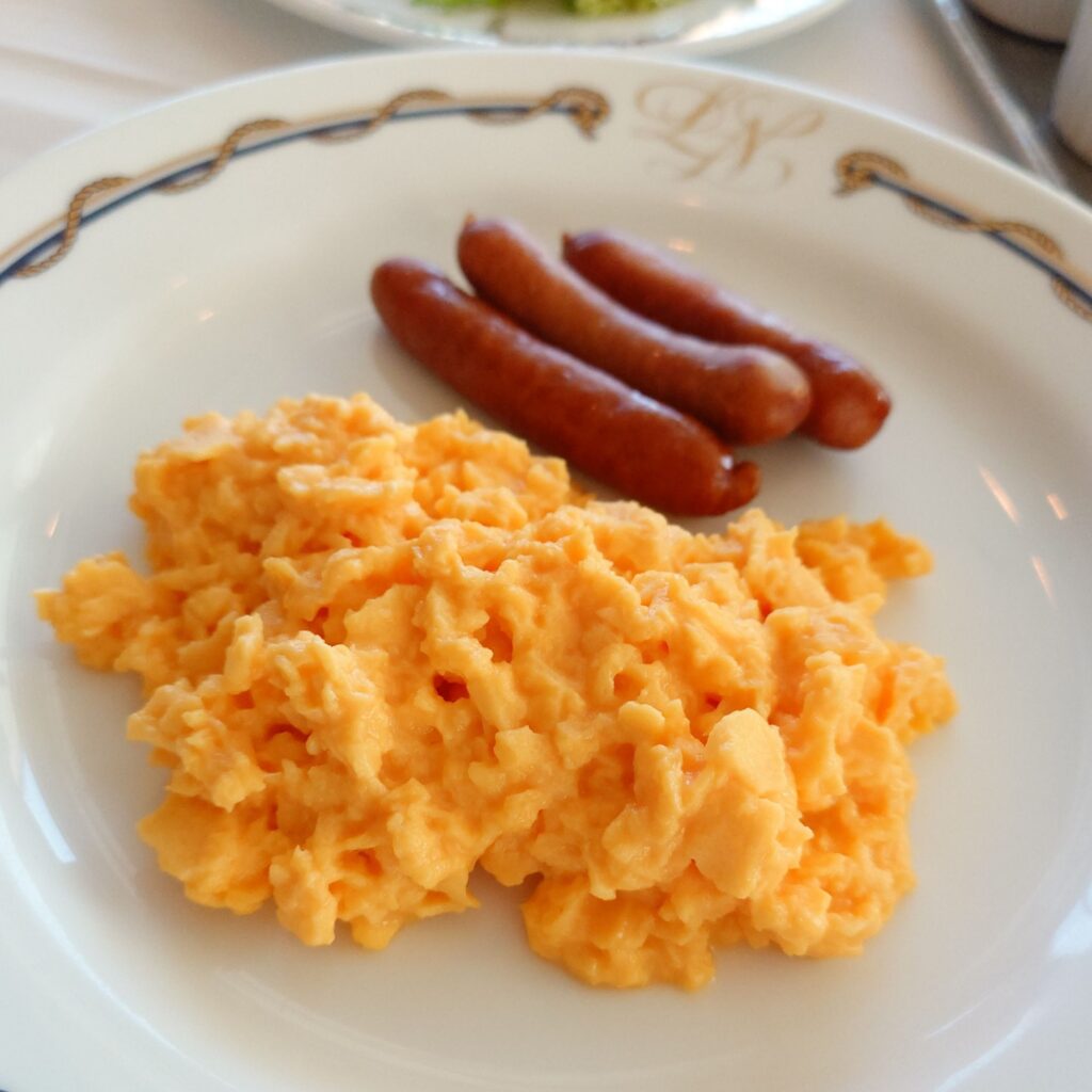 ちなみに今回ミナトが頼んだメニューはアラカルトでスクランブルエッグにソーセージ・焼きたてトーストにジャムのセット(こちらもサラダとドリンクがついてきます)