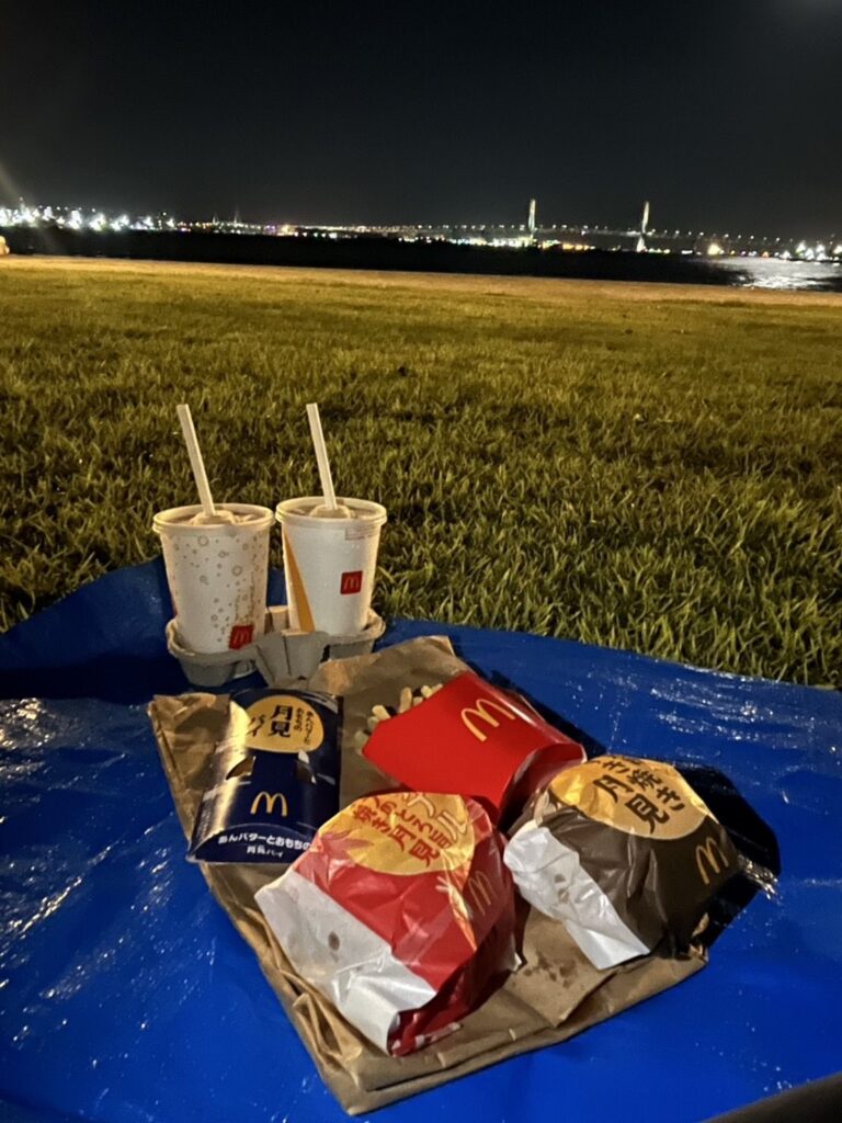 臨港パークで月見バーガー食べながらお月見してみた