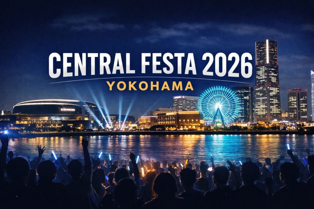 CENTRAL FESTA 2026は、Kアリーナ横浜、赤レンガ倉庫、KT Zepp Yokohama、臨港パークと横浜のランドマーク一体となったイベント。街そのものがフェス空間に。