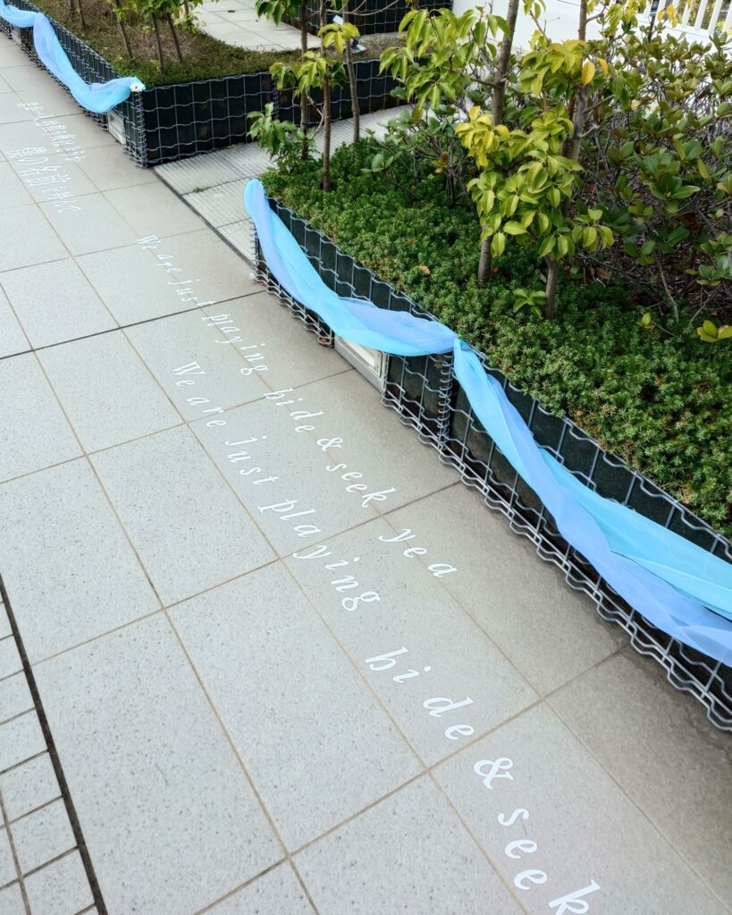 会場との間の道では、道路などに歌詞が描かれていることも。写真もとあるところのスポットで見つけたもの。探してみて!