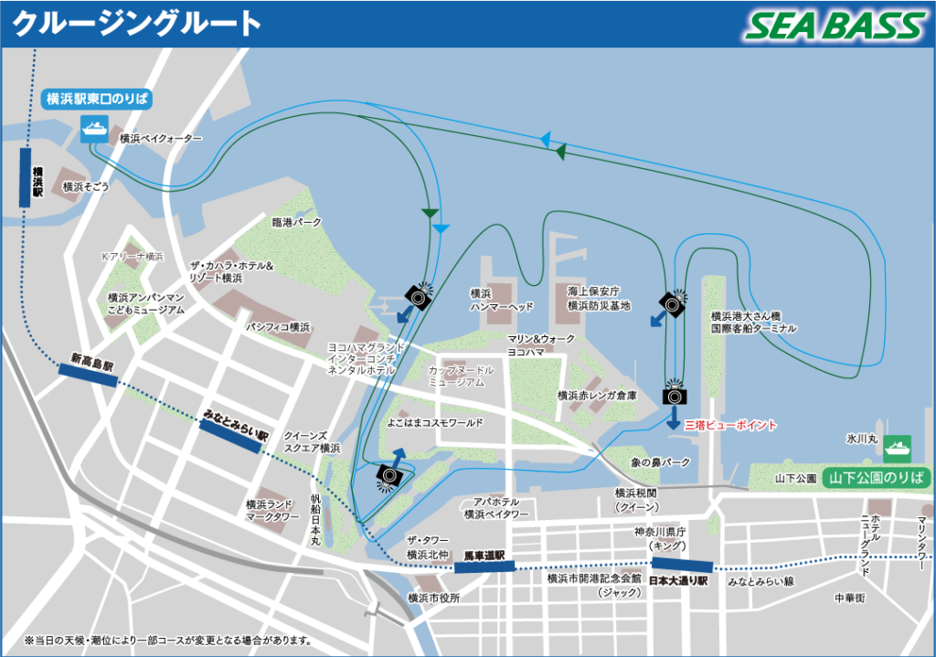 - 出航場所:ピア象の鼻(みなとみらい線「日本大通り駅」徒歩約3分)